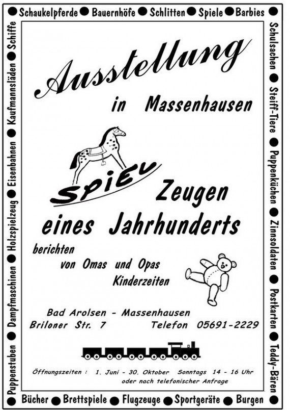 Alle Elemente dieser Website sind urheberrechtlich geschützt und dürfen ohne vorherige schriftliche Genehmigung des Waldecker Spielzeugmuseums e. V. (WSM) nicht weiterverwendet werden. (C)opyright 2006 by WSM e. V. Alle Rechte vorbehalten.